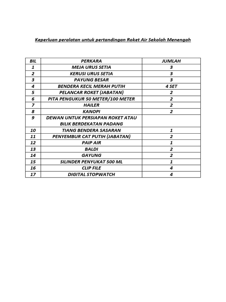 Keperluan Peralatan Untuk Pertandingan Roket Air Sekolah Menengah Docx | via : id.scribd.com1
