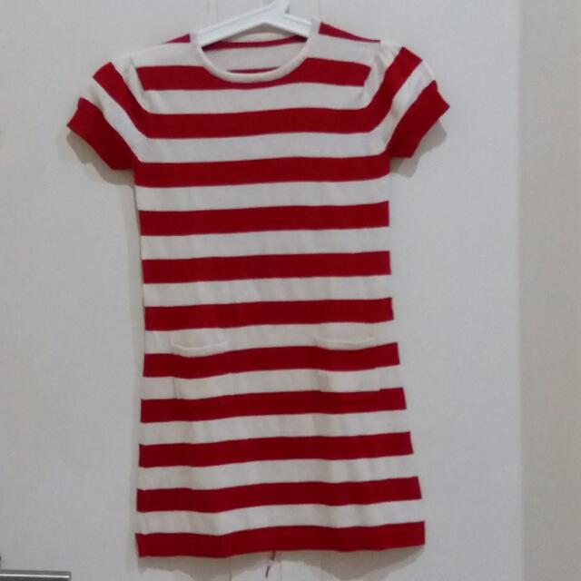 Midi Dress Tanpa Lengan Motif Stripe Merah Putih Berleher Bulat | via : www.pinterest.com1