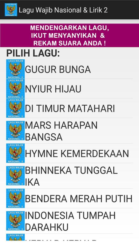 Lagu Wajib Nasional Lirik For Android Apk Download | via : apkpure.com1