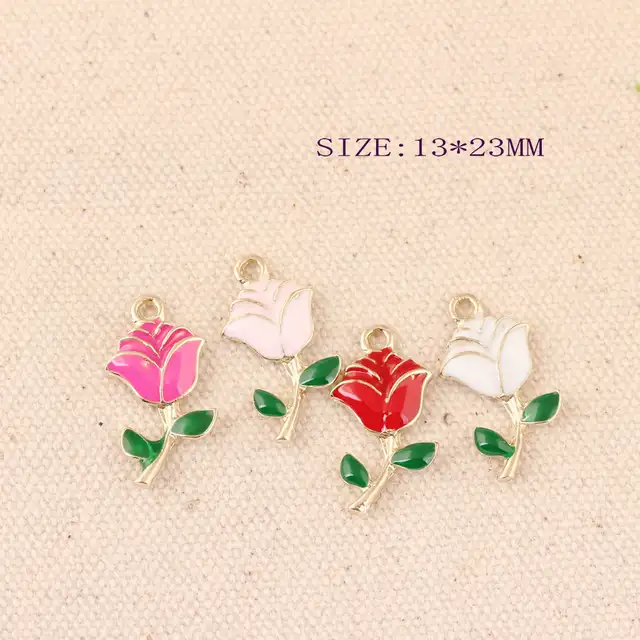 30 Pcs 4 Warna Pink Merah Putih Rose Red Rose Bunga Dengan Hijau Daun Charms Menggantung Pendant Untuk Gelang Kalung Perhiasan Diy | via : id.aliexpress.com1