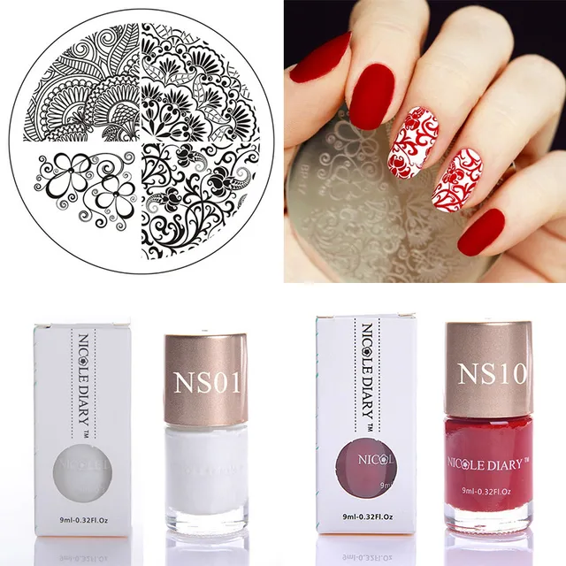 Nail Art Set Floral Stamp Template With Color Varnish Red White Stamping Polish Flower Image Plate Stamp Tool Kit In Nail Art Templates From Beauty | via : www.aliexpress.com1