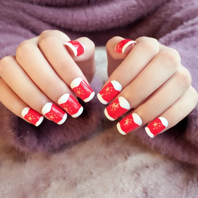 Us 2 46 28 Off Melambaikan Bendera Bintang Merah Stiletto Kuku Palsu Art Tips Putih Perancis Bendera Merah Penuh Palsu Palsu Nail Art Dekorasi Z269 | via : id.aliexpress.com1